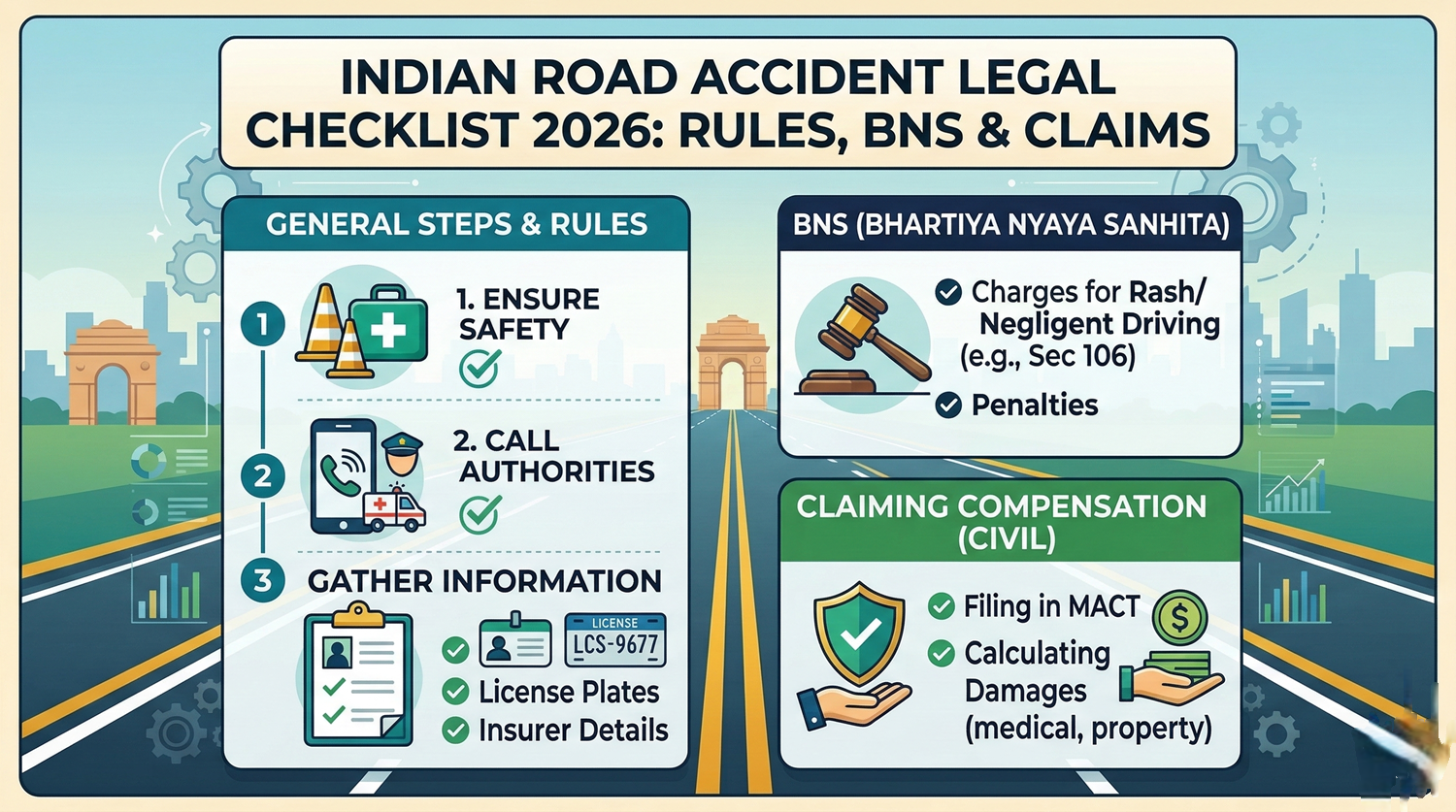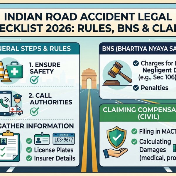 Our Blogs Indian Road Accident Legal Checklist 2026: Rules, BNS & Claims By eVaakil StaffMarch 9, 2026