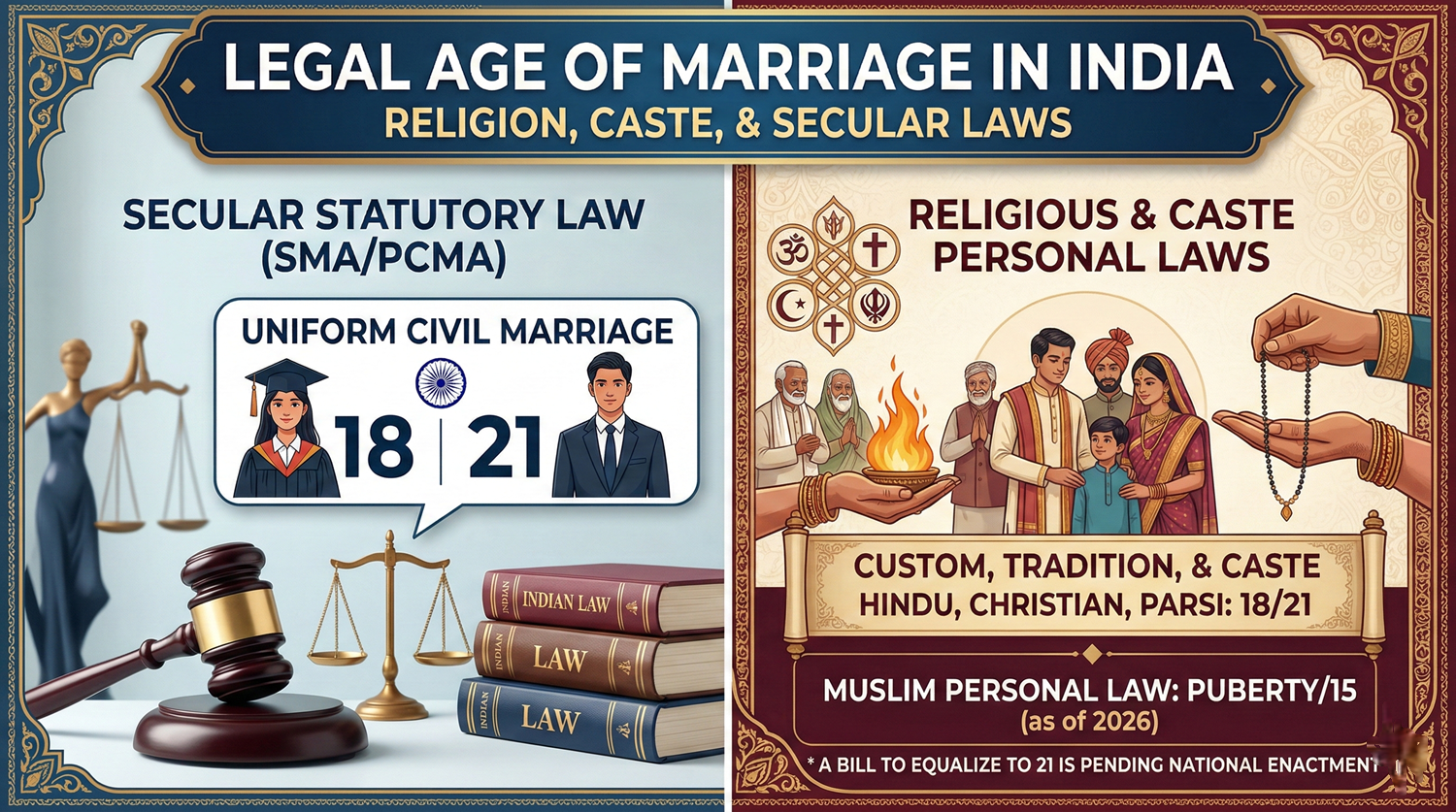 Our Blogs Legal Age of Marriage in India: Religion, Caste and Secular Laws eVaakil StaffMarch 3, 2026