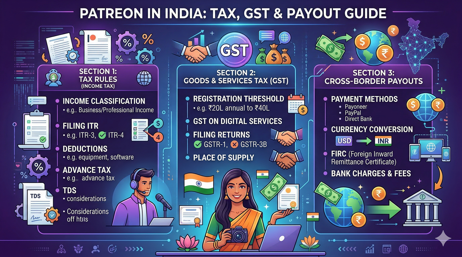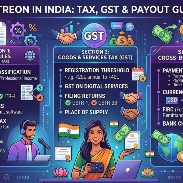 Our Blogs Patreon in India: Tax Rules, GST, and Cross Border Payout Guide By eVaakil StaffMarch 19, 2026